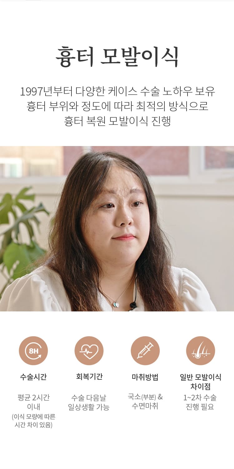의료 수술 후 정수리에 머리 털이 안나는 정수리 흉터 미용 성형 수술 후 흉터가 생긴 헤어라인 사고로 인해 모발이 안나는 이마 흉터